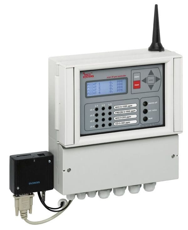 • GSM modem för gaslarmModemet kan anslutas till SCAN20- och SCAN200-seriernas gaslarm